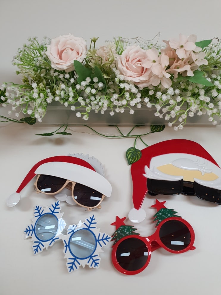 크리스마스시즌 안경도 새로 준비해두었구요 파티소품도 파티안경도 #크리스마스풍선 데코도 6인테이블 2개...
