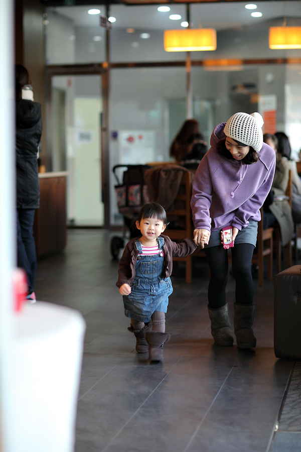 외출 준비로 한창인 모녀... 아빠는 반바지에 목늘어난 면티, 쓰레빠 패션이기에 벌써 준비가 완료. 뒹굴뒹...