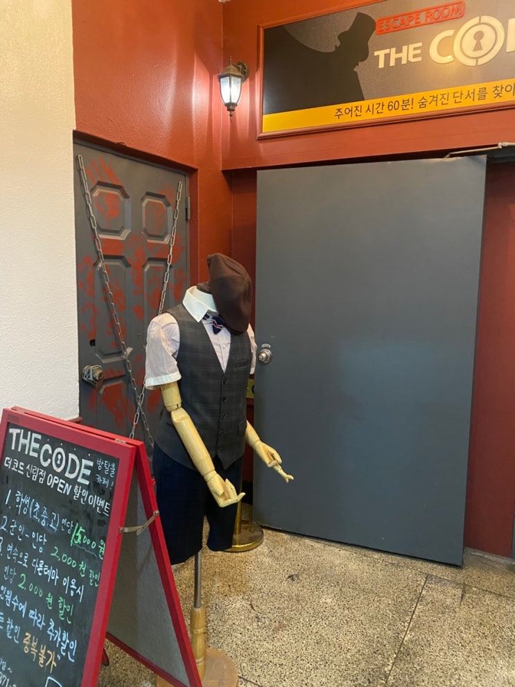 신림 방탈출 카페 더코드 신림에 방문했다. 결론부터 말하자면 1분 남기고 탈출은 했지만 힌트를 너~무 많...