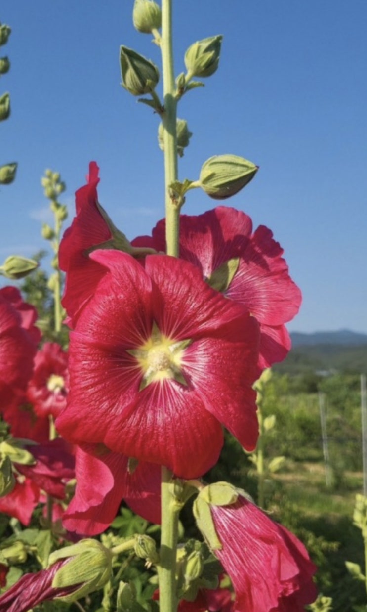작년에 엄마가 미국으로 다니러 오실 때, 접시꽃 씨를 가지고 오셨다. 몇해 전 한국에 갔을 때, 키가 큰 꽃...