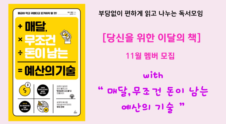 독서모임 [당신을 위한 이달의 책] 11월 멤버를 모집합니다
