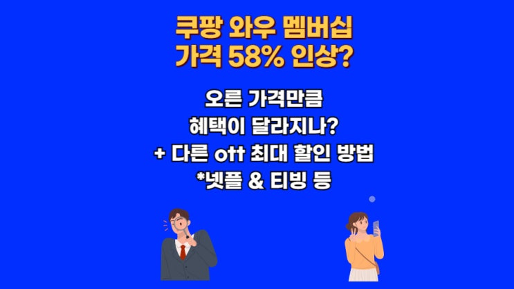쿠팡 와우 멤버십이 가격 인상을 했죠? 처음에는 2천원대에서 시작했던것같은데 4천원대, 8천원대까지 인상...