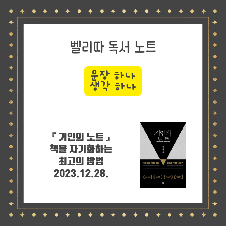 "MAKE IT LIFE" 읽고 쓰며 하루를 쌓고 있는 벨리따입니다. 2-4 책을 자기화하는 최고...
