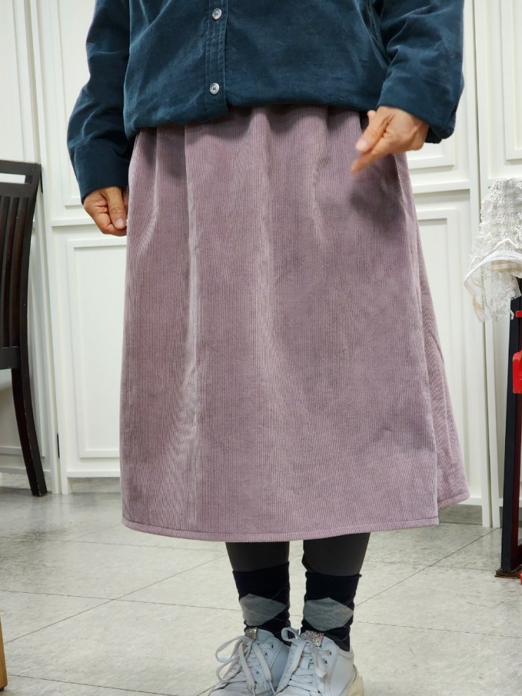 주니수기공방 머신소잉 취미반 성인의류 수업 시작하신 혜원샘의 코듀로이스커트 만들기 시간이예요 보라색...