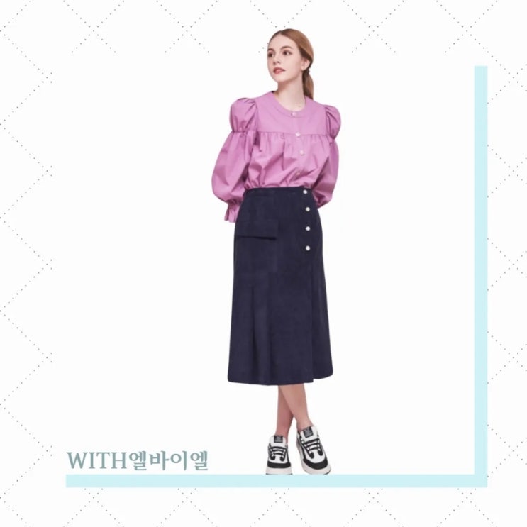 엘바이엘 플라워 퍼프 셔링 블라우스/엘바이엘 네이비 밴딩 코듀로이 스커트