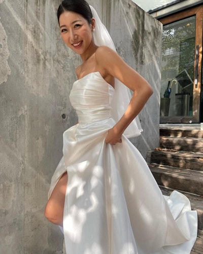 [Burgundyswan]도비실크 드레스 제작 가을바람이 선선하게 부는 10월, 숲이 우거진 펜션에서 결혼하시는 ...