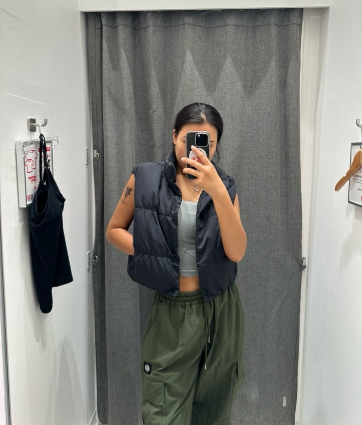 남편이랑 유니클로 가을 신상 보러 다녀왔어요. 근데 눈에 확 들어오는 귀여운 패딩조끼 있어서 사진 찍어 ...