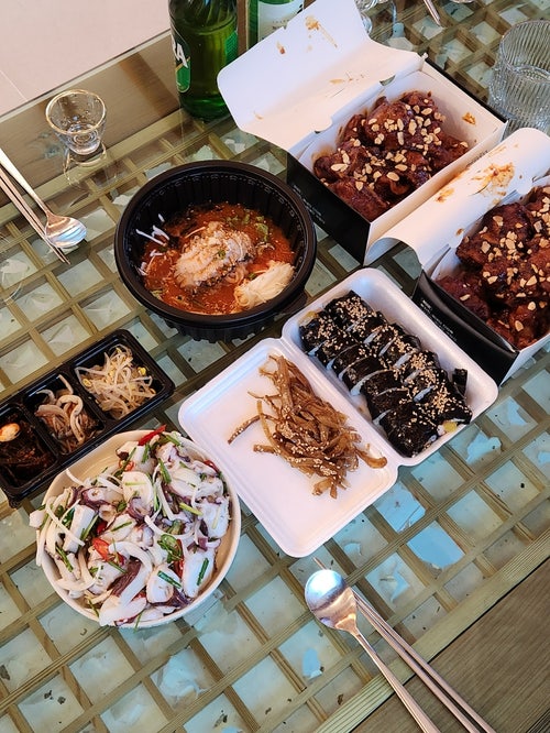 민초 trip_여름휴가 #3 경북 경주 음식 포장 맛집 : 경주성동시장 심여사 천북양념통닭 & 보배김밥 우엉 김밥/ 양포문어&홍게 본점 문어 무침/ 경주남매물회 누나물회