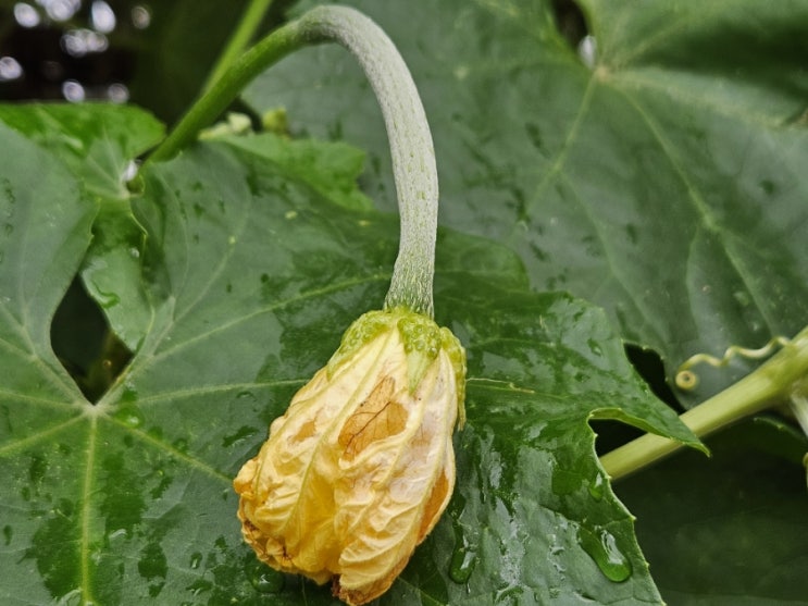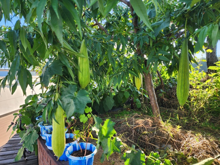 올해는 폭염으로 수세미 열매가 생겼다가도 자꾸 떨어져서 자라지 않더니 늦게 열린 것이 예쁘게 잘 자라 ...