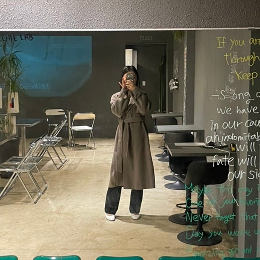 쉬즈미스 코트 롱 더블 벨티드 캐시미어 핸드메이드 여자 봄 겨울 코디 5도 옷차림 패션