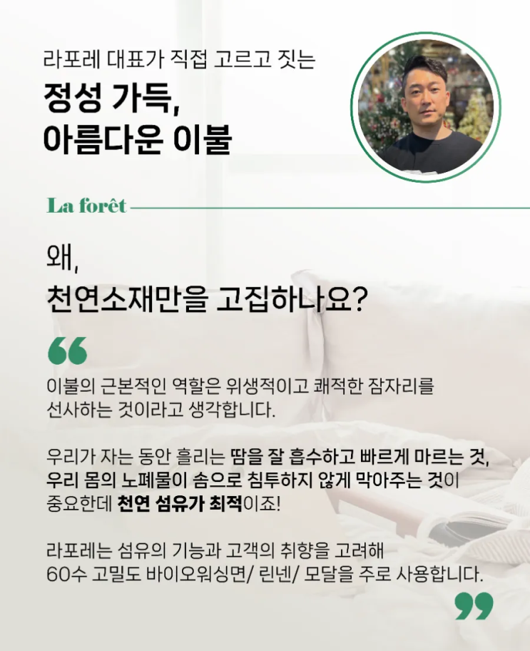 잠이 보약입니다. 퀄리티 높은 이불로 수면의 질을 높여주세요.