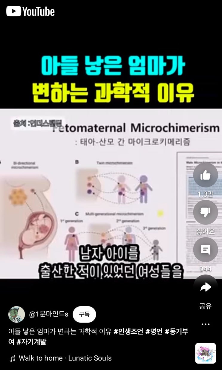 남편이 내게 보내준 영상 ㅋ #아들낳은엄마가변하는과학적 #아들엄마y염색체 남자 아이를 출산한 적이 있었...