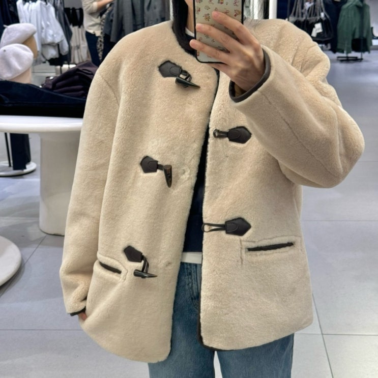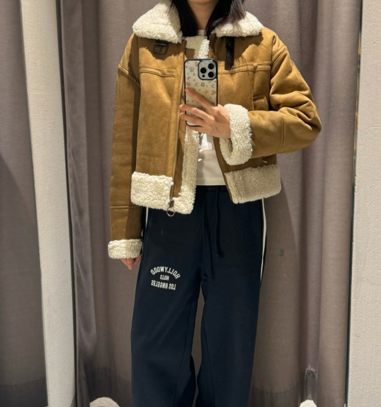 자라 더블 페이스드 크롭 점퍼 무스탕 데일리룩 착용샷!