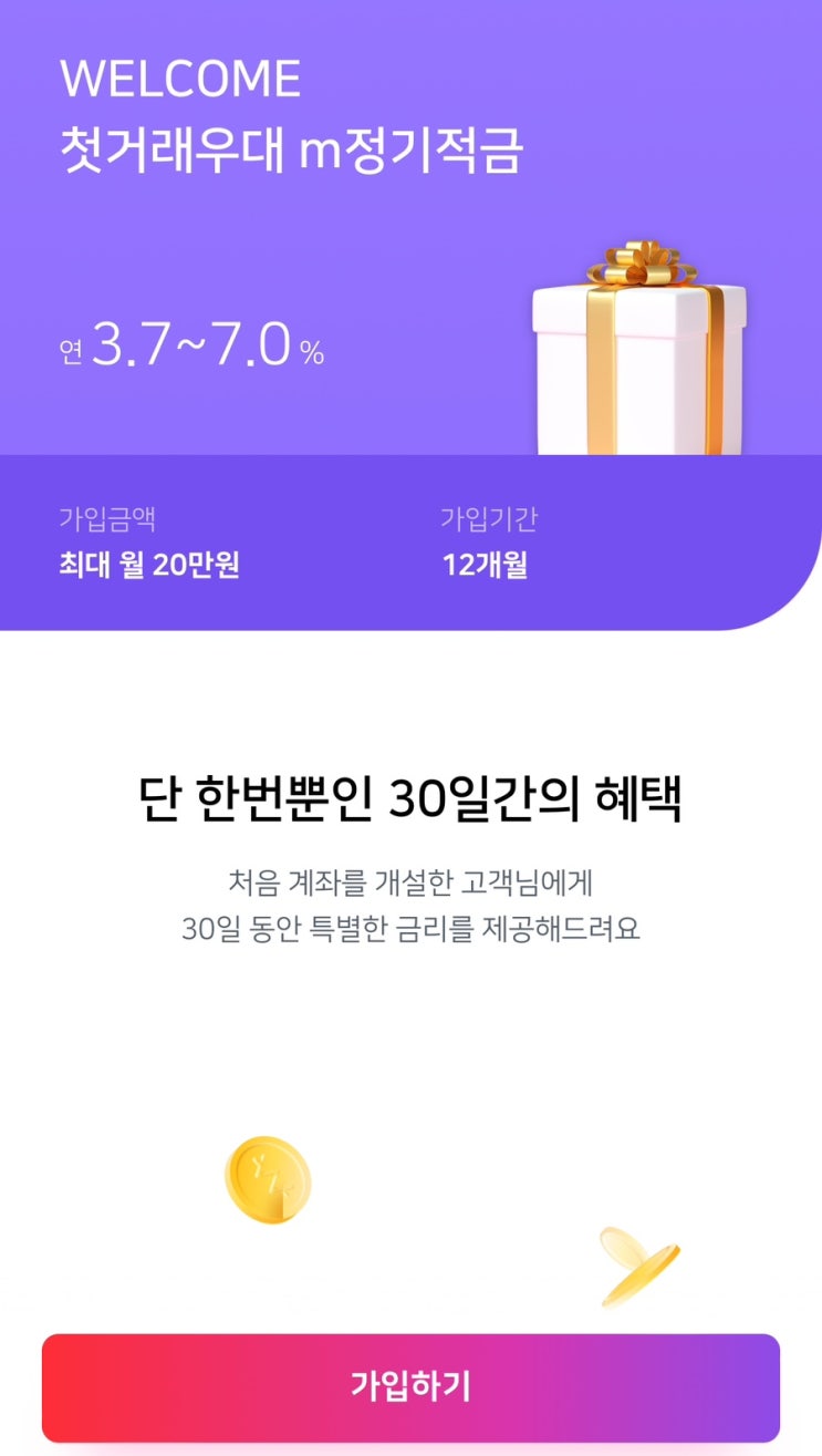 웰컴저축은행 첫거래우대m정기적금 가입 후기