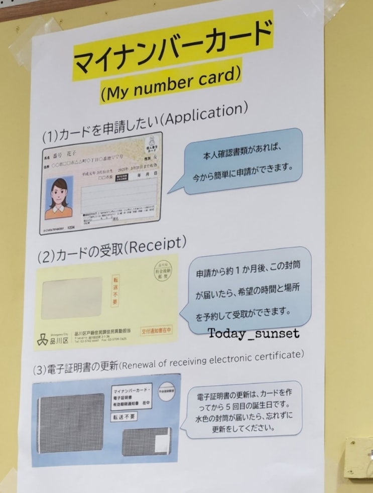 일본 일상 비자 신청 후 대기 중, 마이 넘버 카드 연장 신청