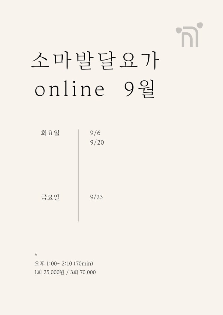 9월_ 총 3 회에 걸친 소마발달요가 온라인 수업을 진행 합니다. 소마발달요가란 인간의 발달과 생물의 진화...