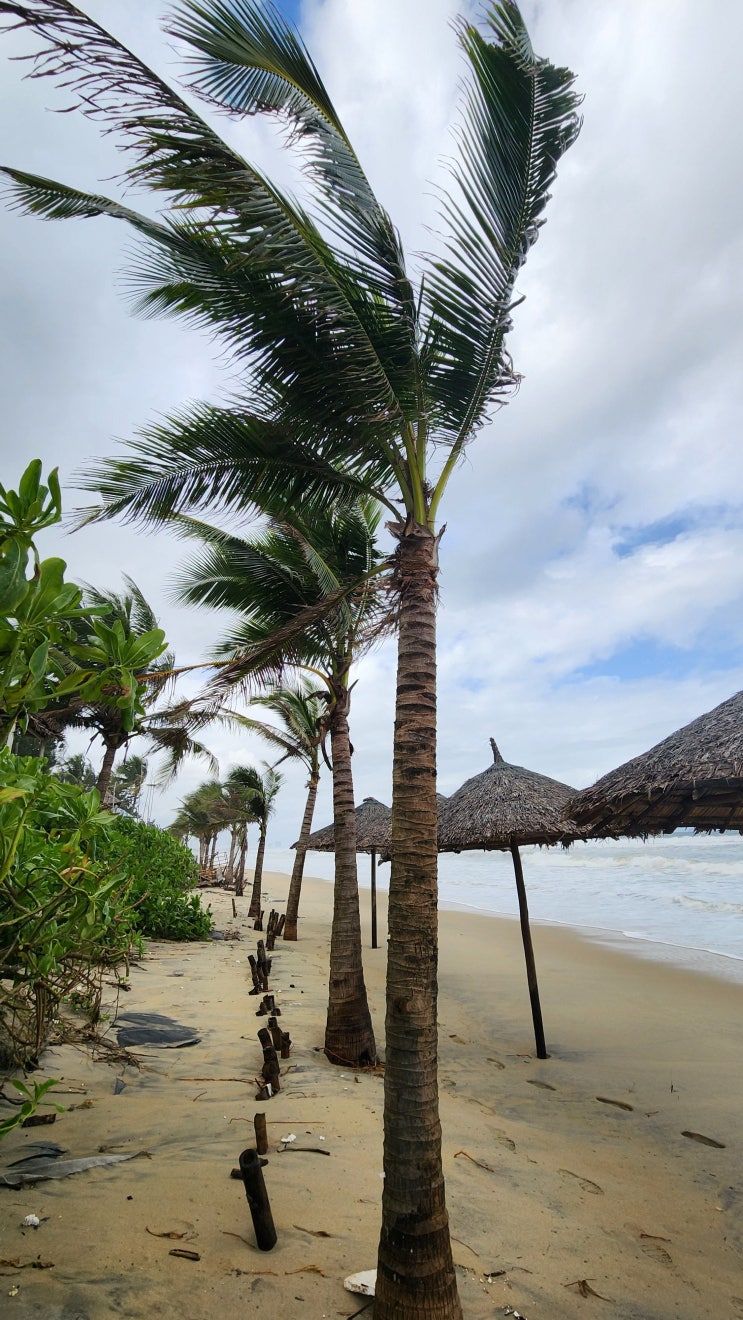 탁 트인 에메랄드빛 바다와 부드러운 백사장이 펼쳐져 있는 "안방비치" (An Bang Beach) 레스...