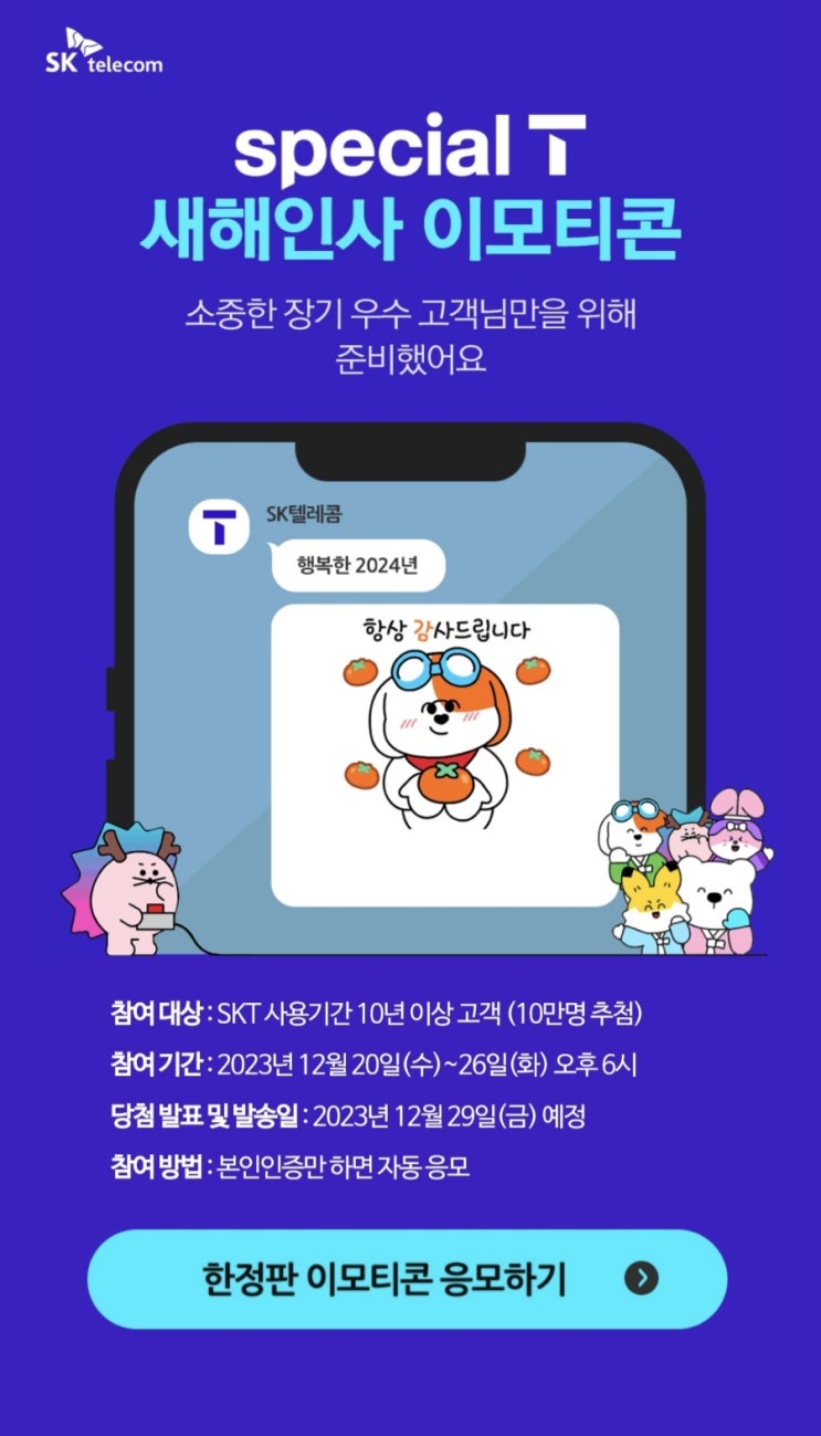 휴대폰 요금 확인하러 Tworld 앱에 들어갔더니 #SKT 사용기간 10년이상 #장기고객 #새해인사이모티콘 ...