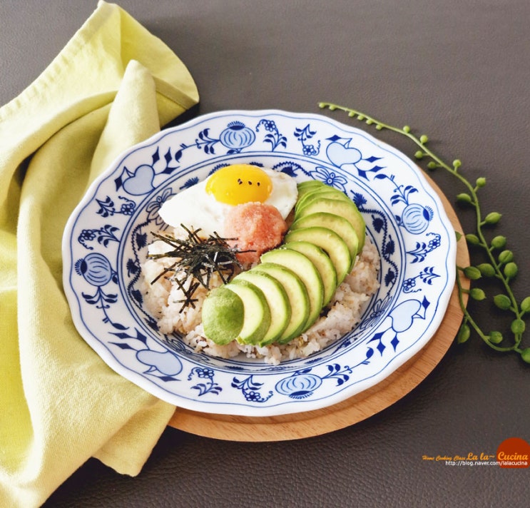 명란 아보카도덮밥 요리 아보카도 명란 비빔밥