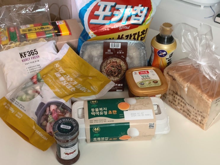 마켓컬리 하울( 샹달프 잼, 동물복지 초란, 혼쯔유, 냉동채소, 포카칩 햇감자, 오차즈케 등 )