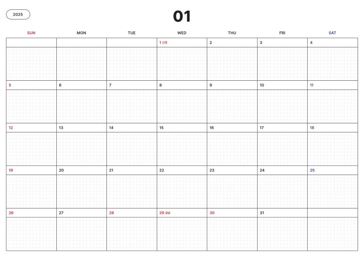 [단미쌤] 2025년 1월 2월 달력 양식 자료 무료 나눔