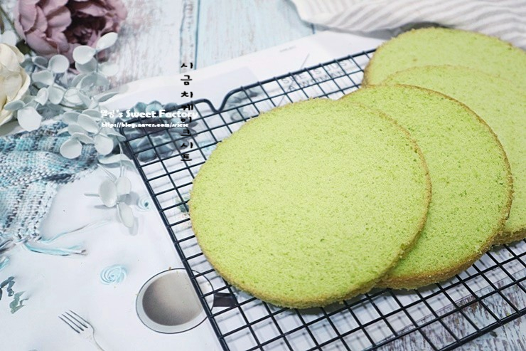 연둣빛 시금치 스폰지케이크 만들기♡시금치 케이크 시트 만드는 법