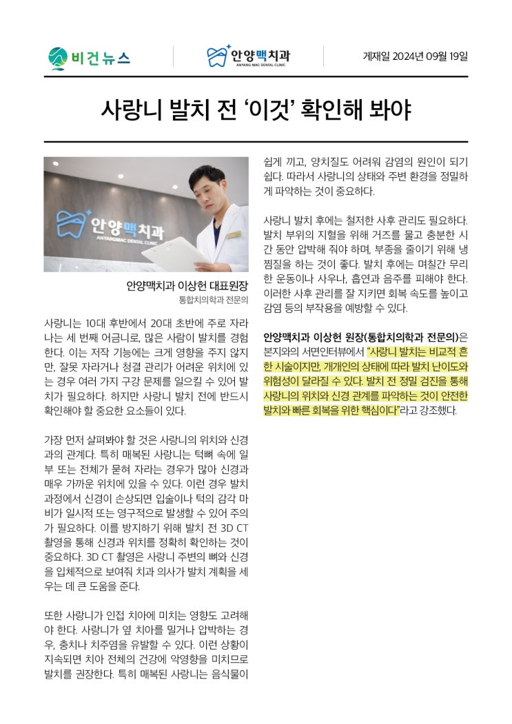 관악역치과추천 사랑니 발치 전 '이것' 확인해 봐야