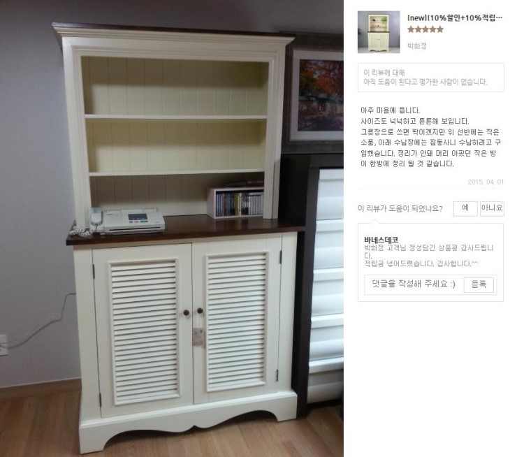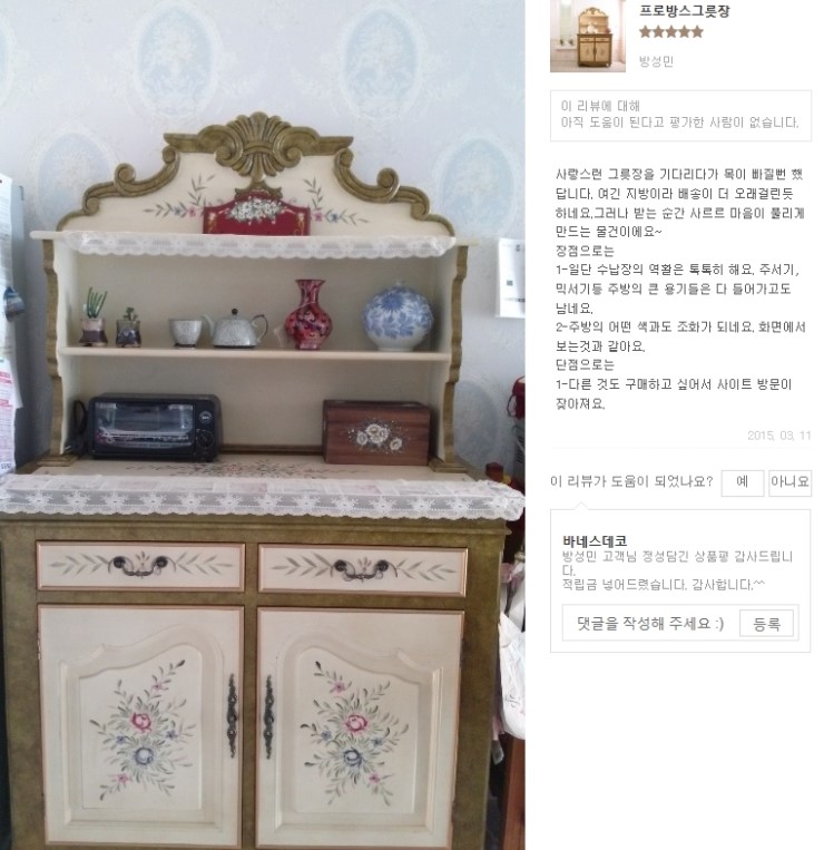 안녕하세요 친환경 원목가구의 기준 바네스데코입니다 ♥.♥ 프로방스그릇장을 구매해주신 방성민 고객님의...