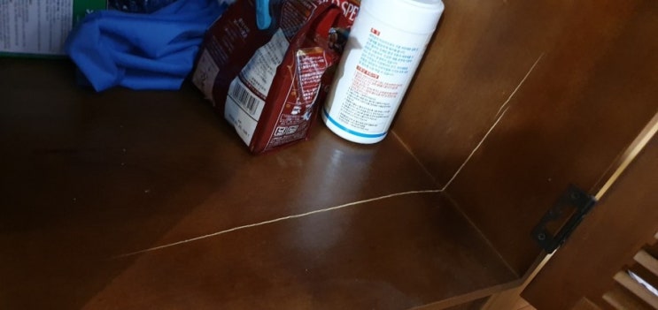 구입한지 9개월된 거실 그릇장 원목가구가 갈라졌어요ㅠ 그릇장 하부에는 드립커피등 비교적 가벼운거를 넣...