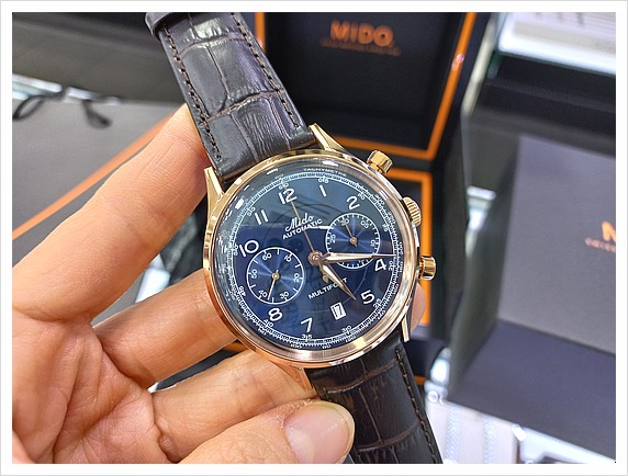 단골고객님께서 주문하신 미도 크로노그래프 가죽모델입니다.멀티포트에서 출시된화려함과 세...