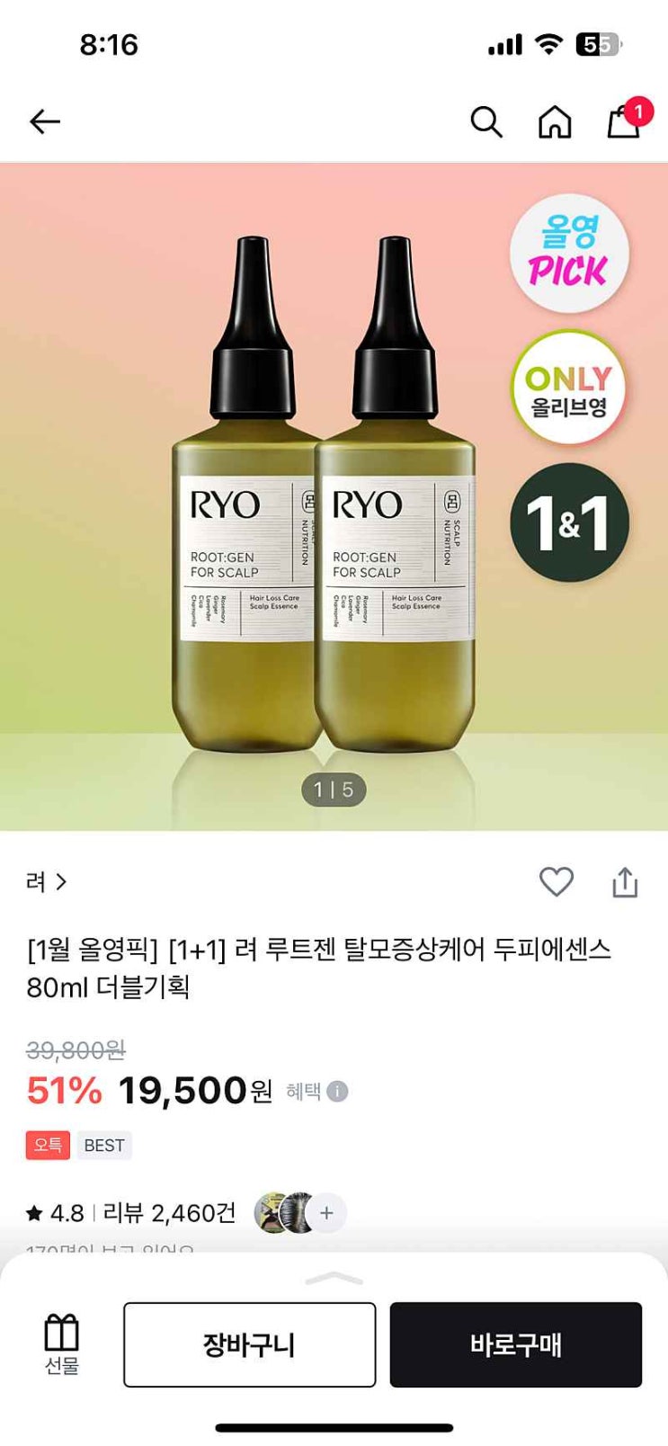 [핫딜] 려 루트젠 두피에센스 1+1 최저가! 써보기 전에 꼼꼼히 체크해봐!