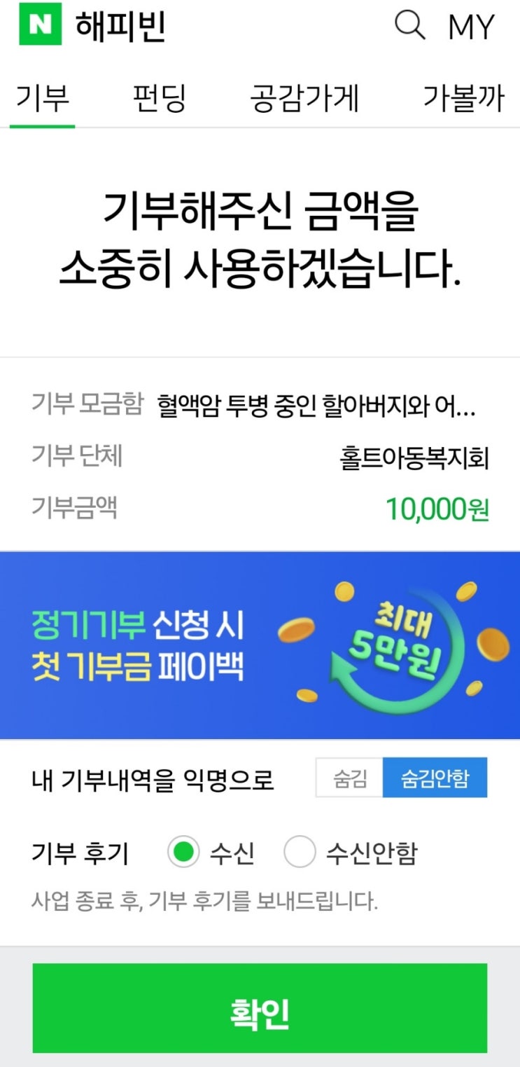네이버 해피빈 기부콩으로 기부하기 ??
