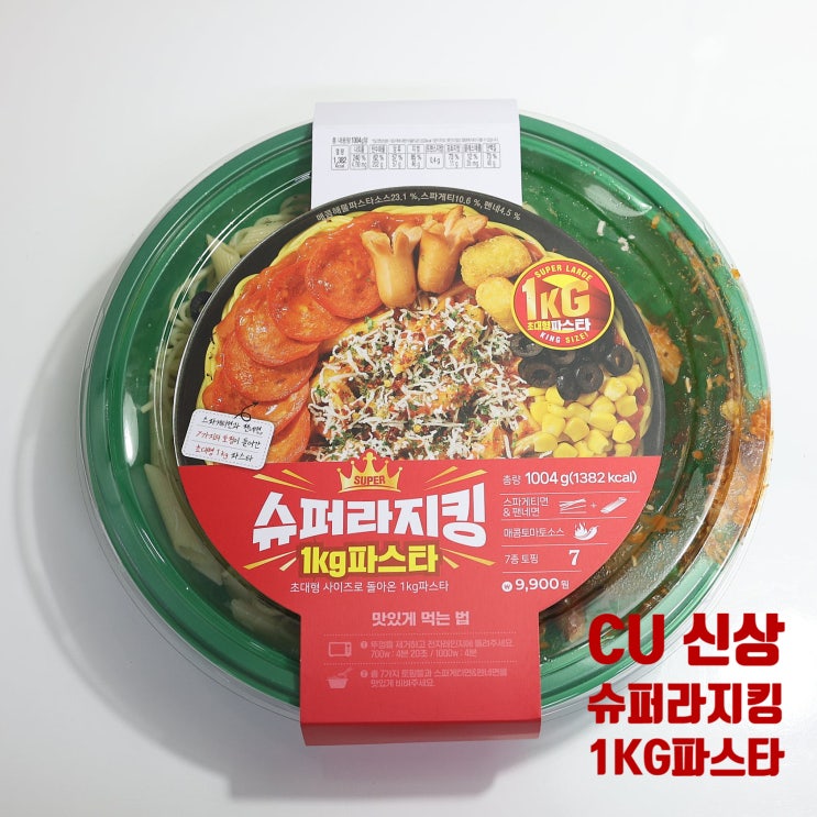 슈퍼라지킹 1kg파스타 구매처 : 씨유 (CU) 가격 : 9,900원 칼로리 : 1382kcal 안녕하세요 쥐찍이에요 오...