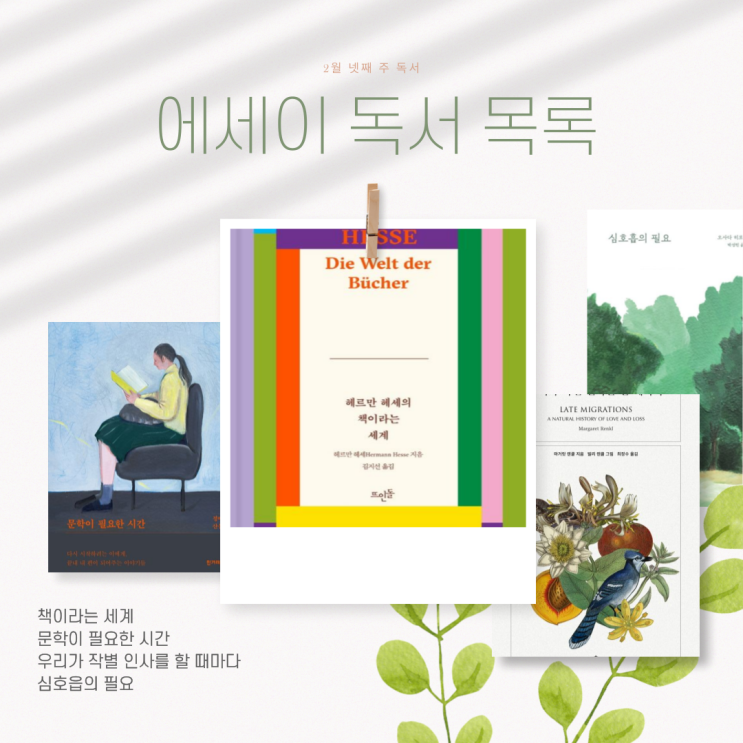 2월 넷째 주 독서목록, 헤르만 헤세의 책이라는 세계, 문학이 필요한 시간, 우리가 작별 인사를 할 때마다, 심호흡의 필요, 책추천, 에세이추천
