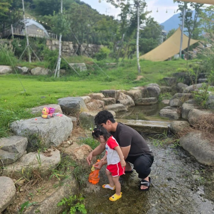 [청도/화양읍] 헬로선샤인 :: 대구 근교 계곡 카페 아기랑 가본 후기. 모래놀이에 당일치기 캠핑도 가능!! (대구에서 30분거리)