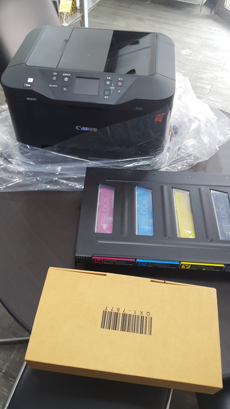 캐논 맥스파이 mb5090으로 납품하였습니다~ 신형제품이라 성능이 빵빵하네요~ 아이블럭을 사용하는 프린터...