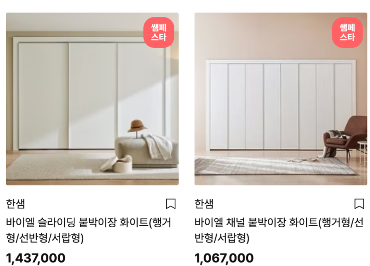 한샘 붙박이장 가격.옷장.봄인테리어
