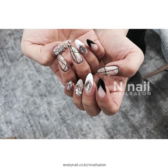 #n네일 #일상 #유리조각네일 #스와로브스키 #시스루네일 #캐릭터네일 ...