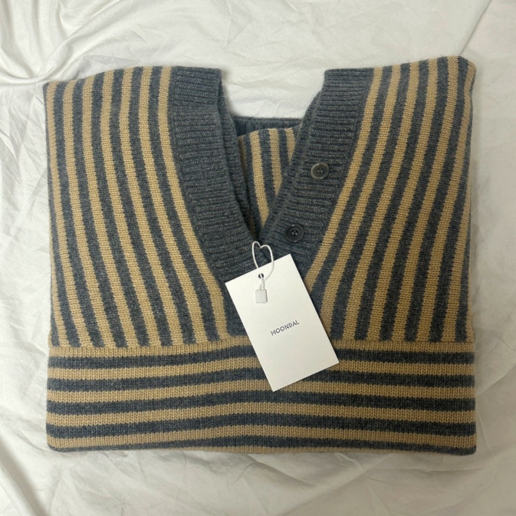 문달 브이넥 니트, Tar Stripe Knit in Beige 내돈내산 추천 후기