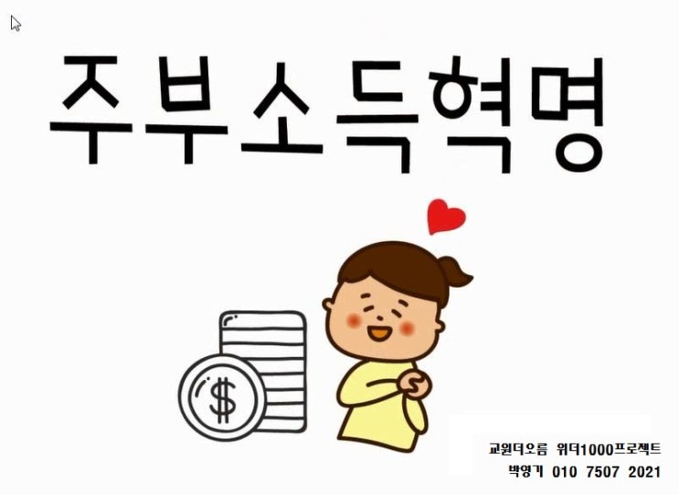 "주부소득혁명"? 주부들이 세상을 살리는 일? 그것이 무엇일까요?? ^^ 주부들이 하는 일 없이 시간이 지나...