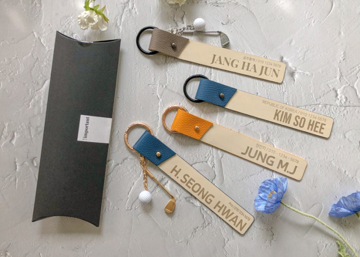 홀인원선물 - 뻔한 골프공선물 말고 고급스러운 임폴턴트컴퍼니 캐디백 네임택 기념품.