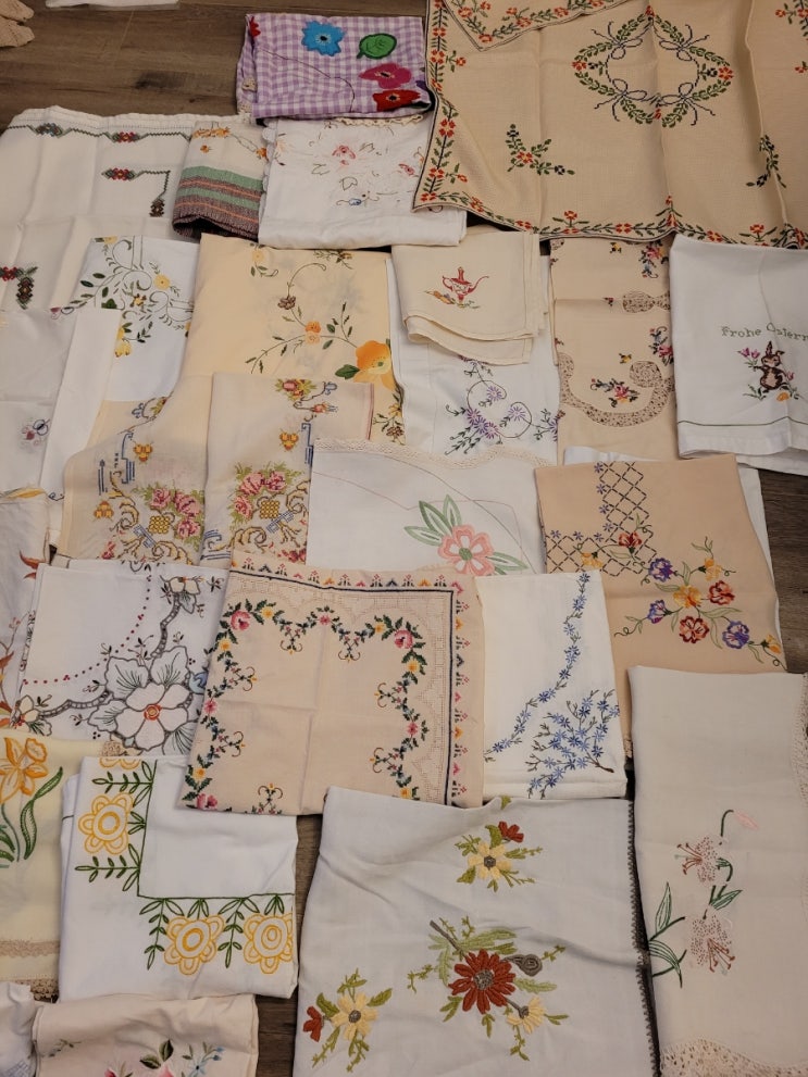완료 )빈티지 꽃자수 테이블보 모음