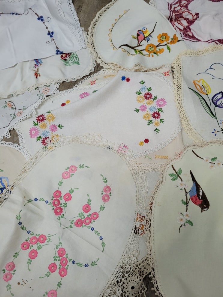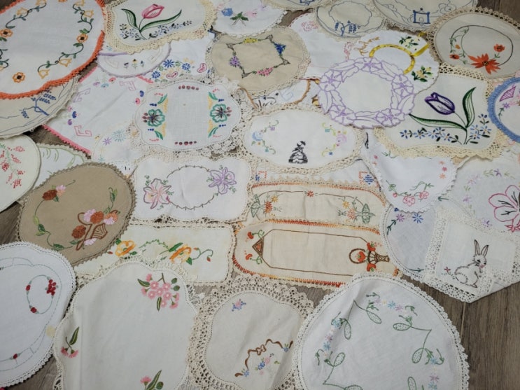 완료 )빈티지 꽃자수 도일리모음