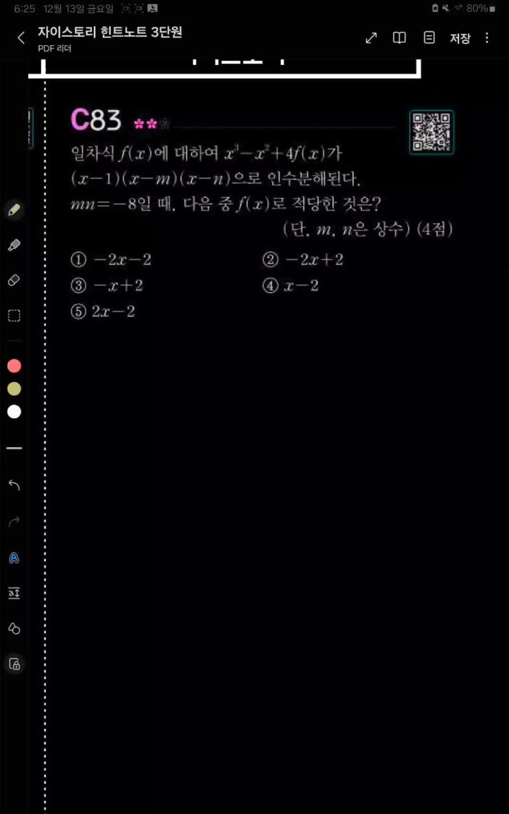 [시우][중3][수1] 자이스토리 고2 수학1 끝