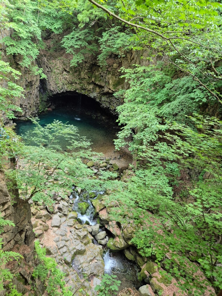 밥을 먹고 포천 비둘기낭 폭포를 보기 위해 왔다 국가유산 방문코스 도장 찍어주고!!! 비둘기낭을 보러 간...
