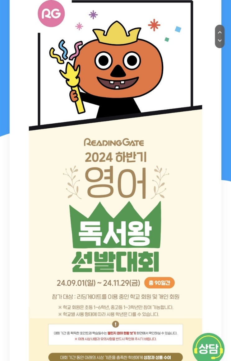 [리딩게이트] 하반기 영어독서왕 선발대회 [9.1~11.29] 점수별 상장과 상품♡ New 리딩게이트 10월부터! 달라진 리딩게이트