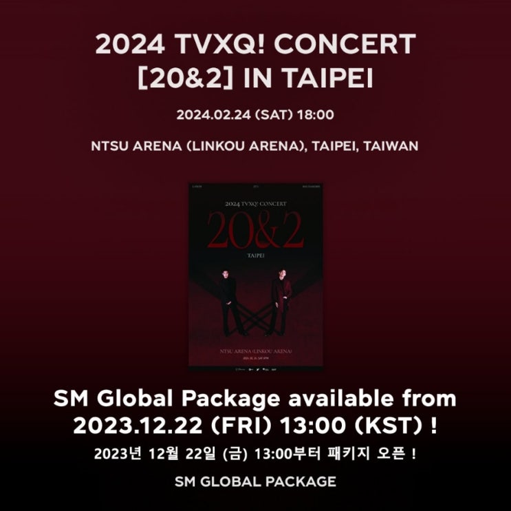 231222 [TVXQ! 20&2] 동방신기 20주년 대만 콘서트 : SM 글로벌패키지 신청(패키지 일정 및 가격)