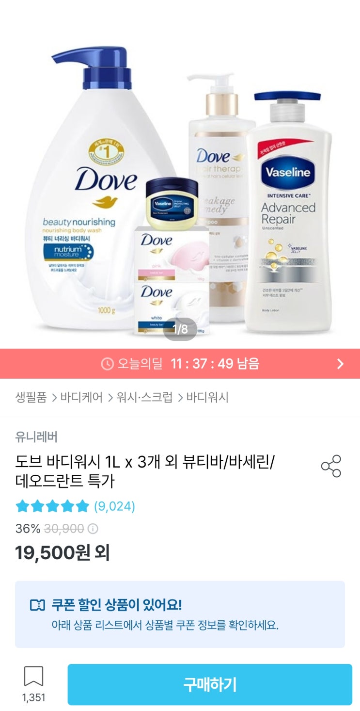 도브 바디워시 1L×3개 11,385원 핫딜