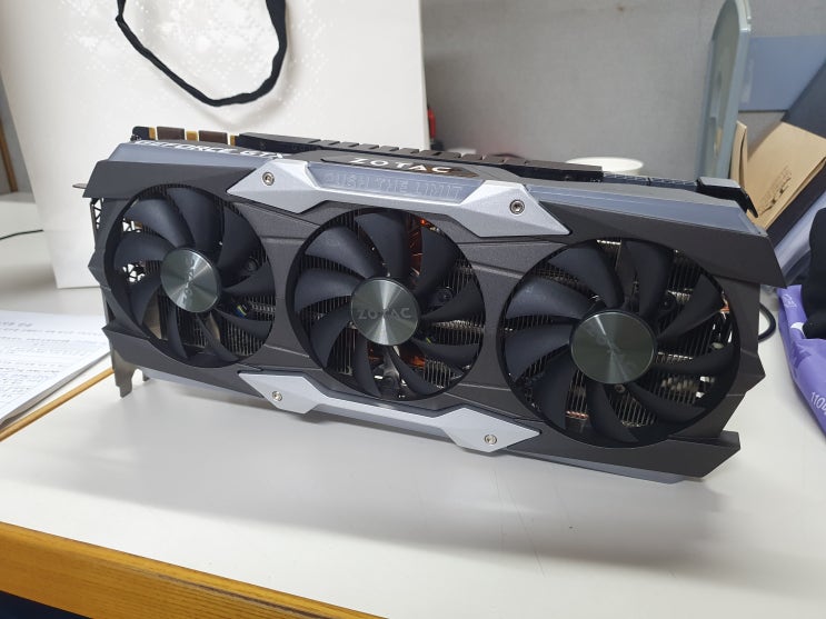 중고로 구입한 Zotac 1080ti AMP Extreme CORE입니다. 가격은 20만 원에 구매하였고 판매자분이 ...