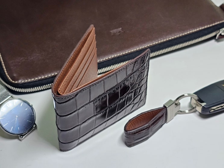 40대 남자 지갑 선물 넘버 원 더퀴르 수제 악어가죽 남성 반지갑